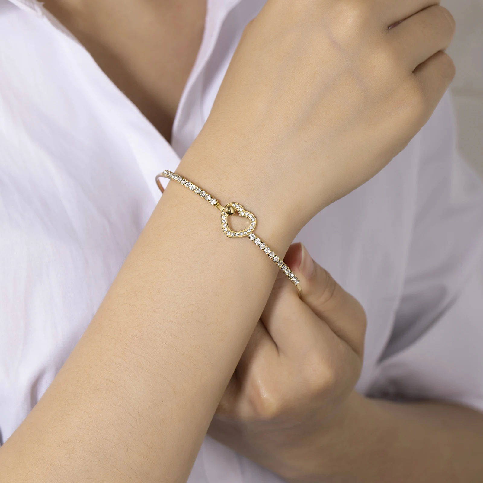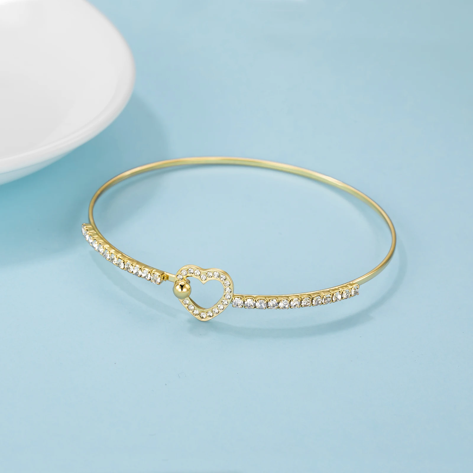 2021 Fashion Jewelry Alloy Crystal Charm Bracelet Women Heart Bangle Silver/Rose Gold Plated Anniversary Romantic Style